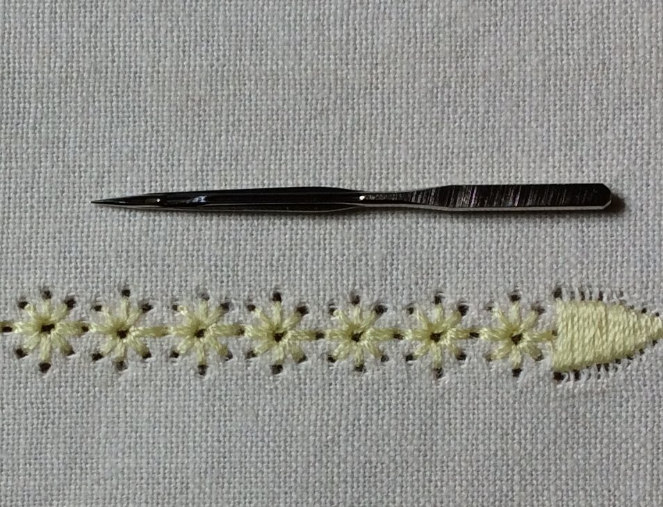 A wing needle may be used to add interesting detail to garments, I’ve tried a few stitches and this hemstitch gives the best effect.