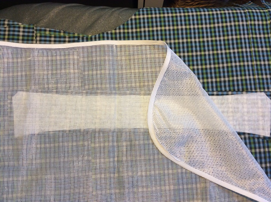 I am trying hard to get some sewing done but life has intervened again; I have a shirt cut out, interfaced and marked ready to start. I was using my pressing mesh to iron on the interfacing and thought I’d post a photograph or two, it’s excellent for the job because I can see what and where I’m pressing through the cloth.
