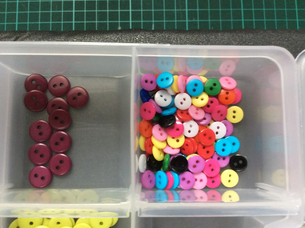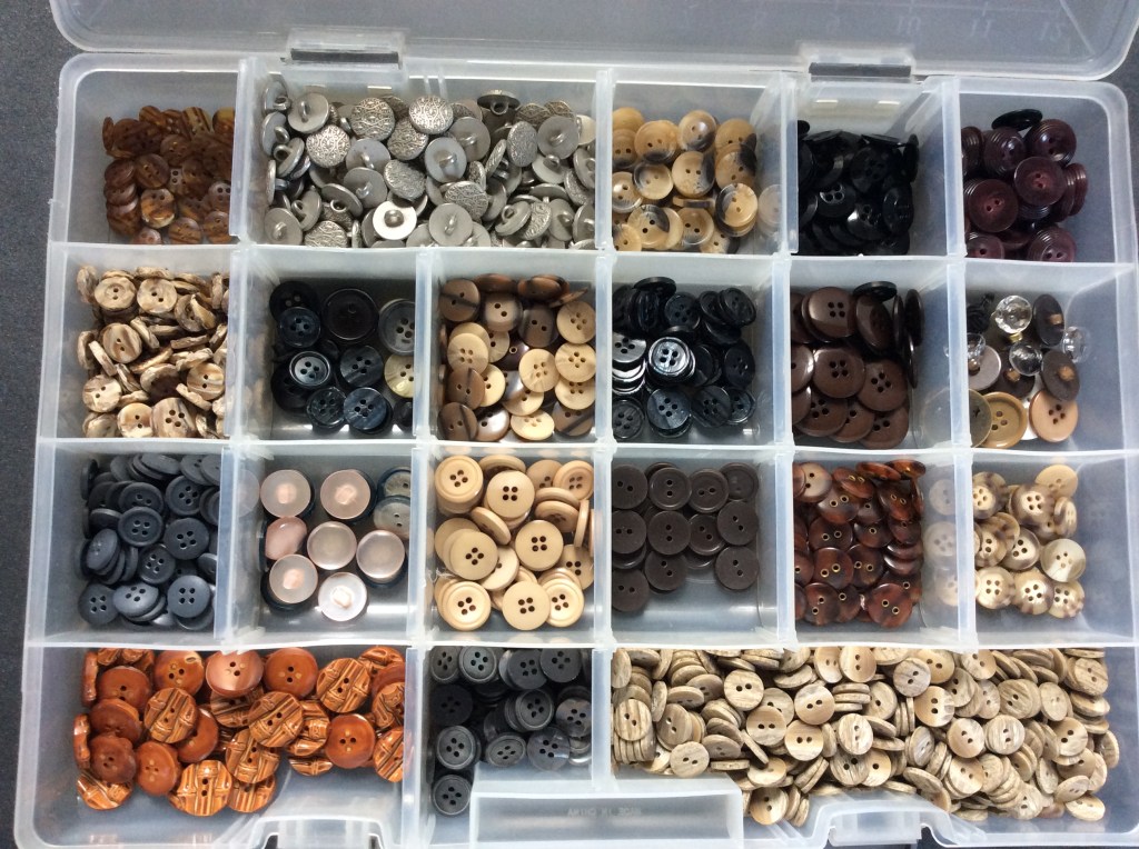 I have a container of mixed sizes, some OK for shirts and some too big, unless I start making clothing other than shirts I won’t use the larger buttons.