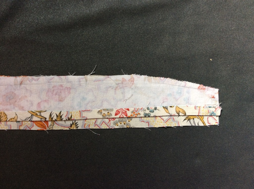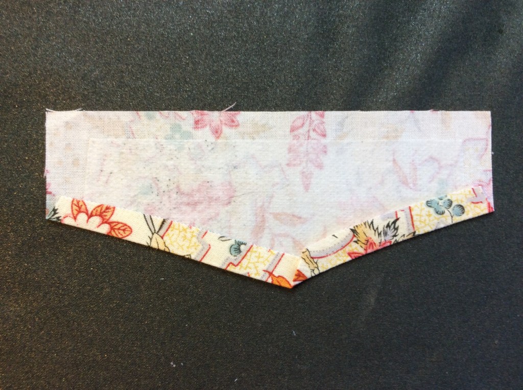 This is especially helpful on collars and collar stands where it can become very bulky, once again using heavy interfacing.