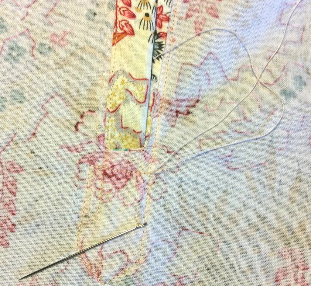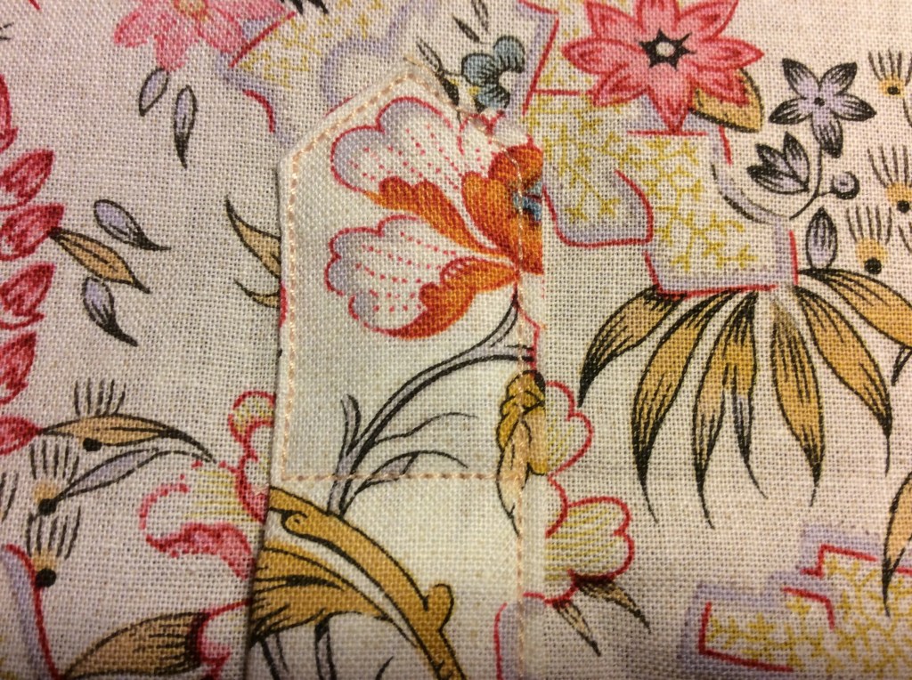 I no longer back-stitch, but take the threads through to the back……and tie them off, this gives a much neater finish.I know it’s only a placket but it looks so much better than back-stitching.I do the same with the pocket, this is more important because it’s very visible.