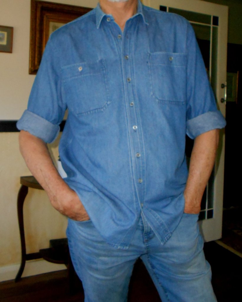 I made a denim shirt some time in the 1980s and have worn it often – it has survived very well, it must have been a great piece of fabric. I still wear it regularly even though the style is a little dated; loose fitting with big, rounded pockets and looser sleeves than I like.