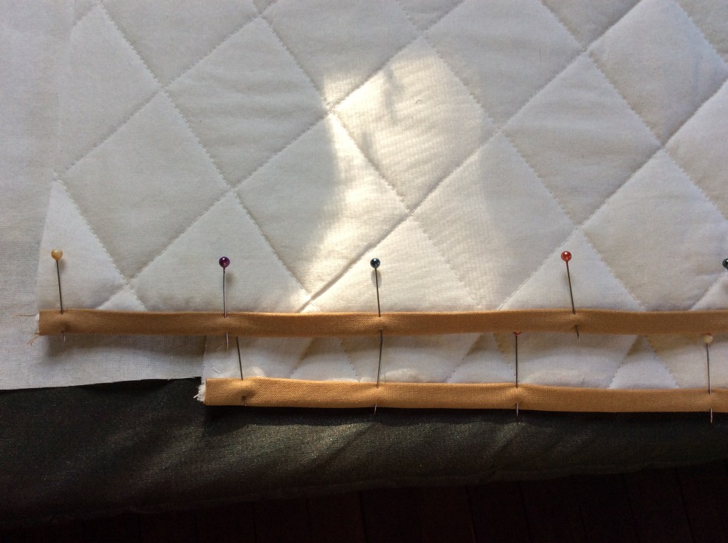 I’m attaching the trim to the bottom edge and the next piece will be a continuous piece to go up one side, over the top and down the other side – I may round the top of the sides so it will be possible to sew it all in one fell swoop.