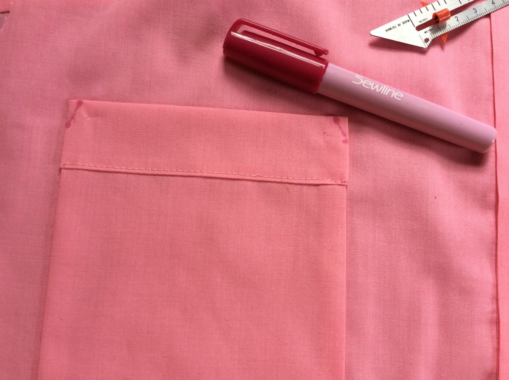 I glued the pocket in place instead of pinning, it made it easier to sew.