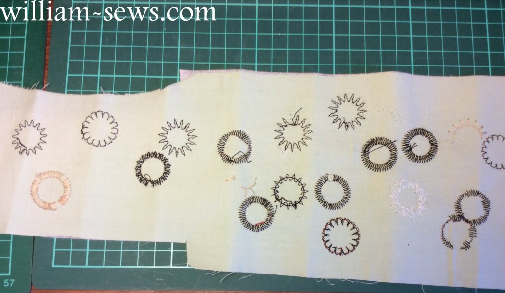 Not very good examples of the flower stitch foot, it works on this machine because it has an adjustable foot pressure, my new machines don’t, although it may work on heavier fabric, I’m hoping to make a denim jacket soon and the foot may work then. This machine will be great for top stitching denim as well.
