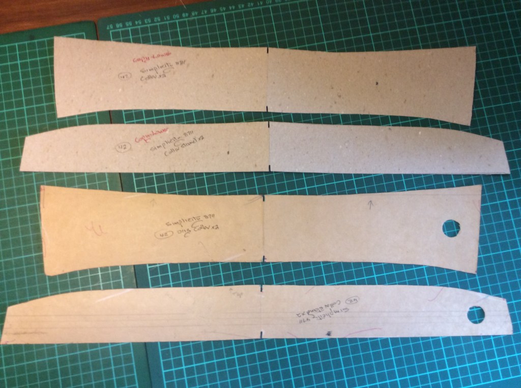 I’m also trialling (spell check is trying to make me to type ‘trialing’) a perfectly cut interfacing pattern piece, I’ll use the interfacing as a seam guide and the fabric should fold sharply over it to give a neat edge to the collar and stand.