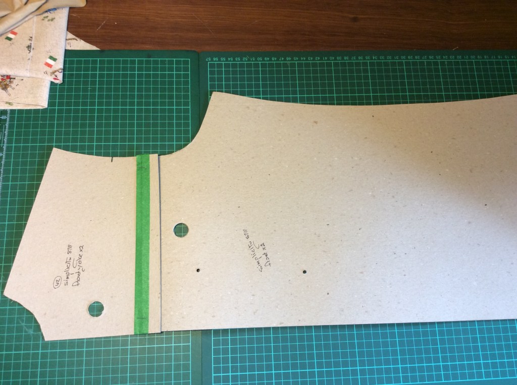 I made the new pattern in Ramboard and it works well – I left off a seam allowance and had to add it to the front yoke but I’ll cut the piece again as I have a lot of the board. The only downside to Ramboard is that it’s tough to cut because it’s thick – the upside is that the pattern will last for a long time.