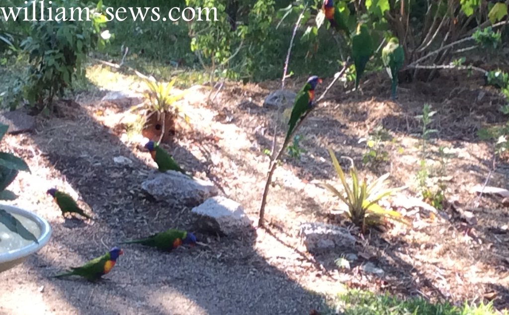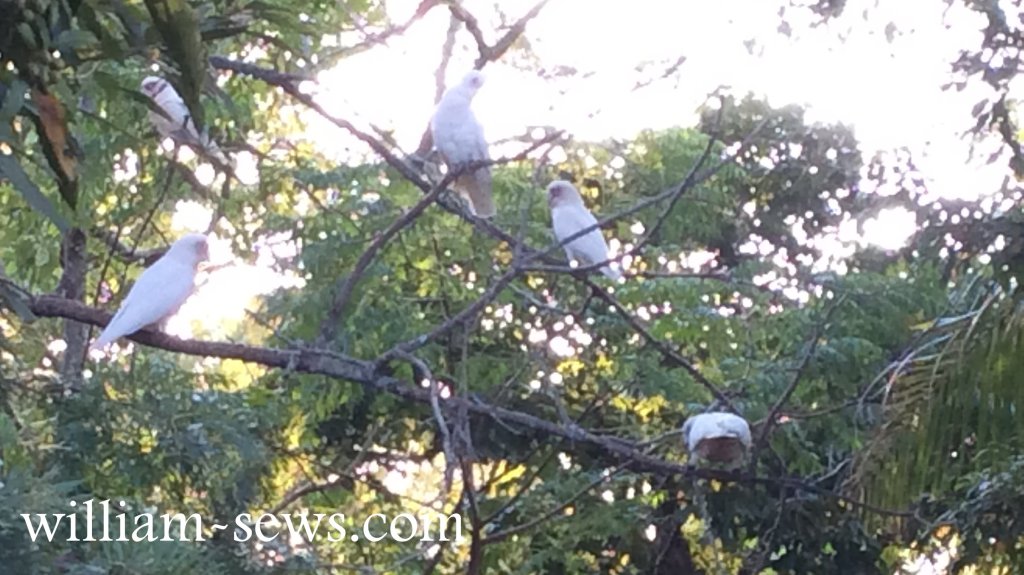 The scary ones are the Black Cockatoos, they are enormous with a wing span of 1 metre, the sky almost darkens when they fly over – They don’t come very often which is just as well because they can be destructive.