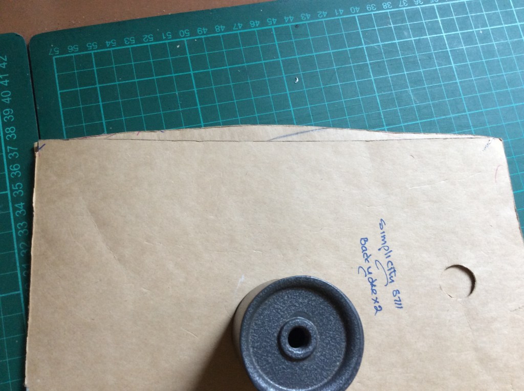 I can’t straighten the yoke to the body because then the neck hole will be too big, so I aligned the two pieces and have taken the excess out of the centre back – I hope this doesn’t make the shirt too tight across the shoulders because it’s almost 1.5cm off the width.