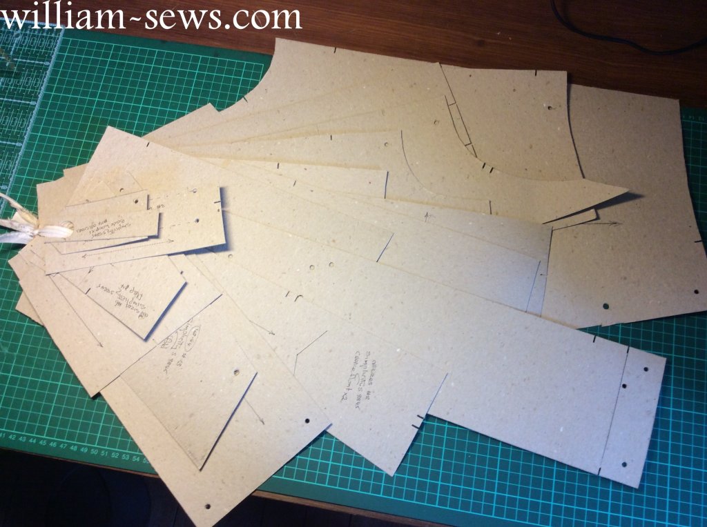 I’ve copied and altered ALL the pattern pieces, it seemed like hundreds when I was working on it but it’s nineteen plus a button placement piece which I didn’t copy because the buttons will be spaced differently.