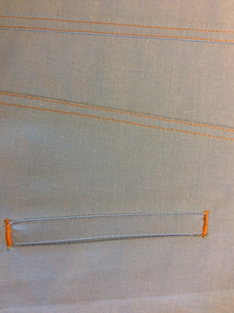 I have completed one of the welt pockets and it’s not too bad but not perfect…my excuses are; it’s only a muslin and I haven’t sewn one for a long time.