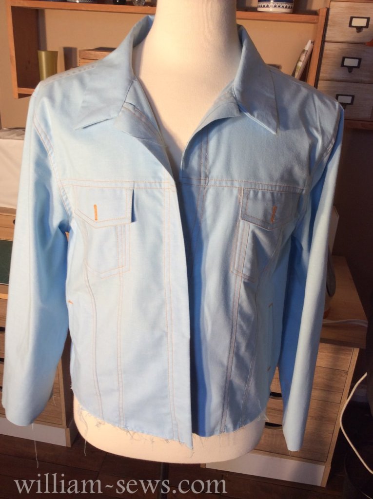 I am STILL working on the Levi jacket (so much top stitching)! The Mimi G Simplicity 8845) sizing is terrible, the 42-44 is barely a 38 and very short as well – the top pocket is too small and I’m not happy with it but I shall soldier on. I have a friend who loves it, it fits him and he wants it so that makes it worthwhile. Only the waistband, cuffs and side plackets to go…and buttons/holes of course.