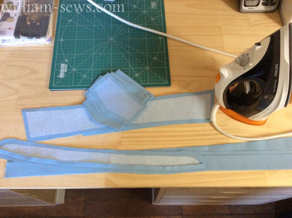The sleeve plackets are ready to be stitched; I always press them into shape before I sew, it makes them easier to handle when pulled through.