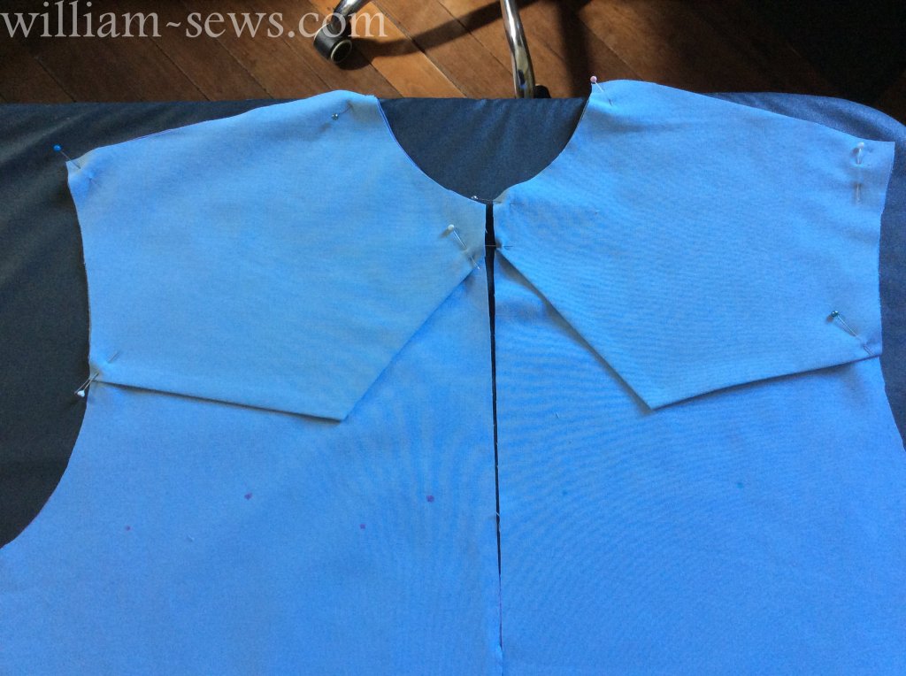 This is the front yoke and the back is similar – I have stitched the yoke in place since I photographed this. It’s a nice blue.