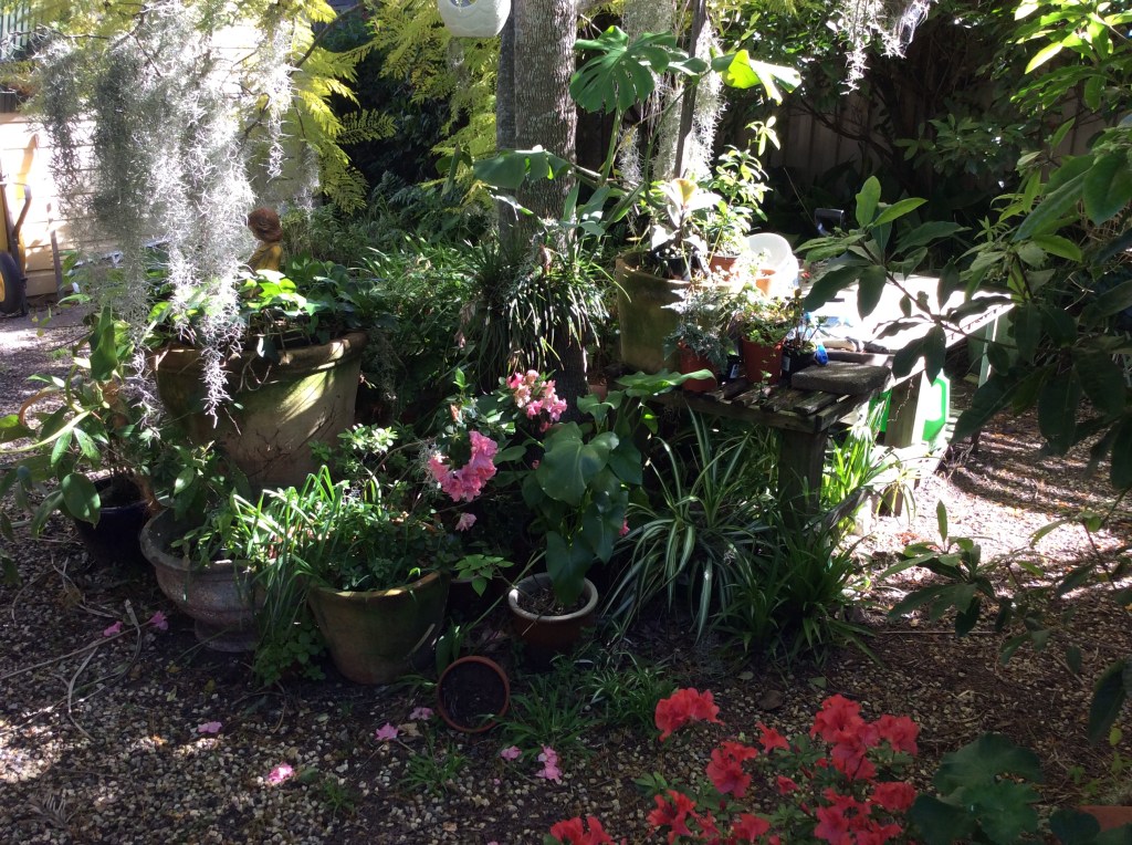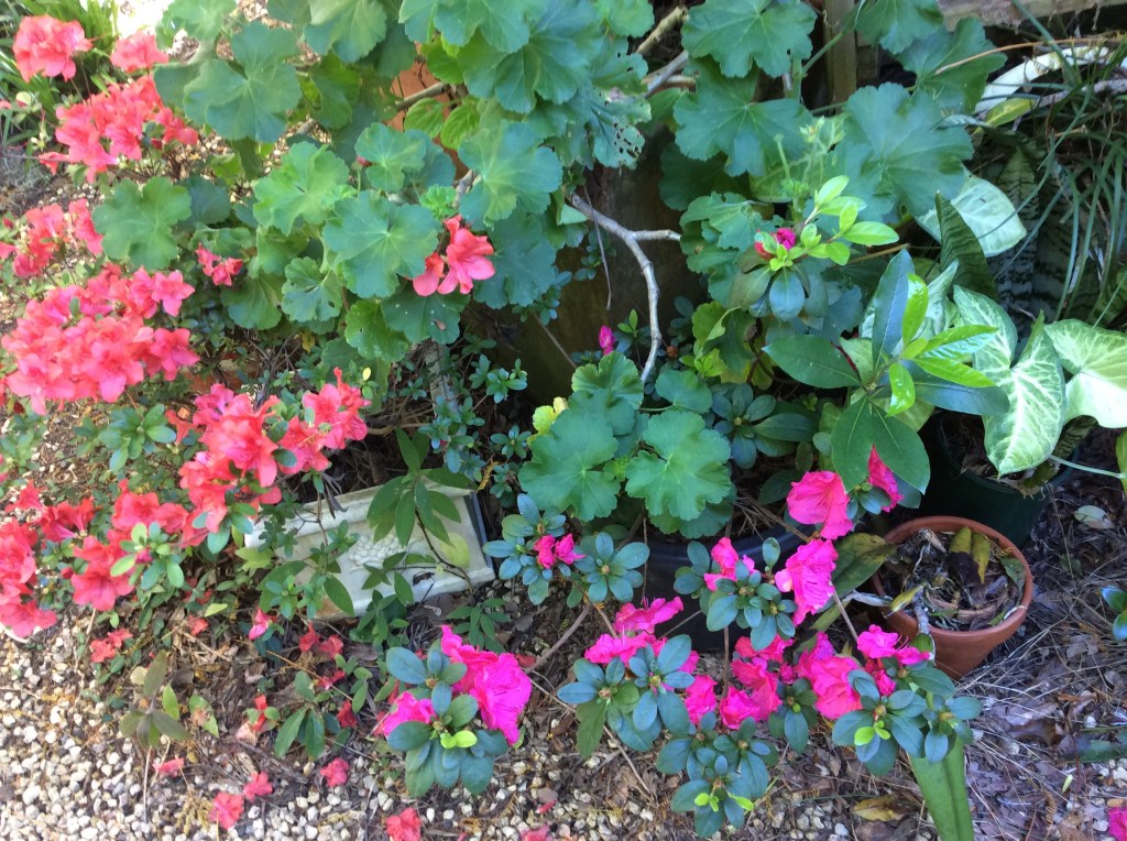 It’s the last month of winter, it’s been cold but not too bad, this means that work will have to start on the garden soon. I took a few photographs yesterday; Azaleas and Trumpet Vine give a nice touch of colour to the winter garden.