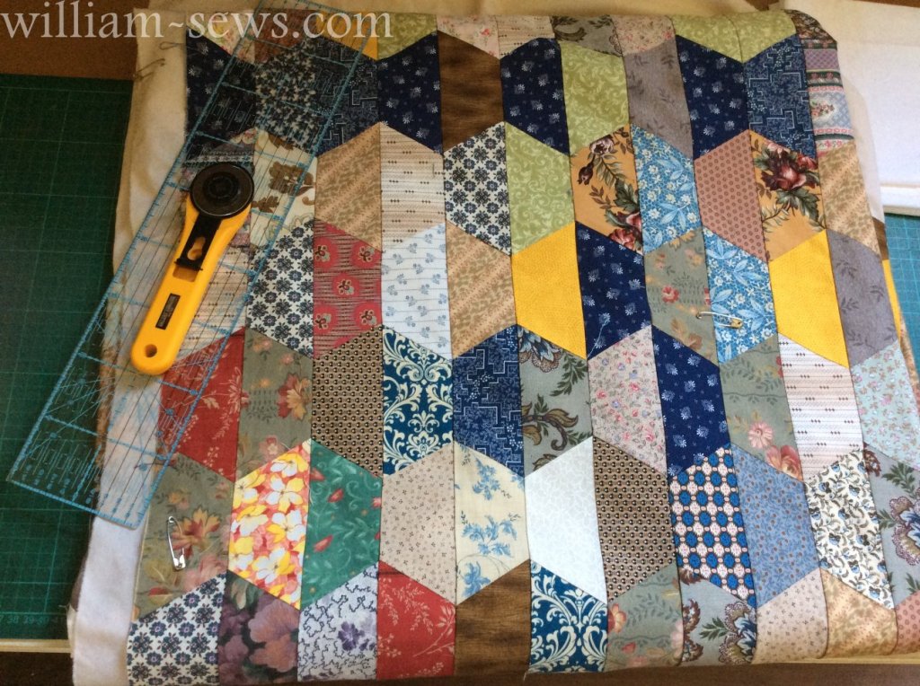 It’s 2.2m x 1.75m and only two layers, the back and the patchwork, no wadding, so it’ll be a light quilt,