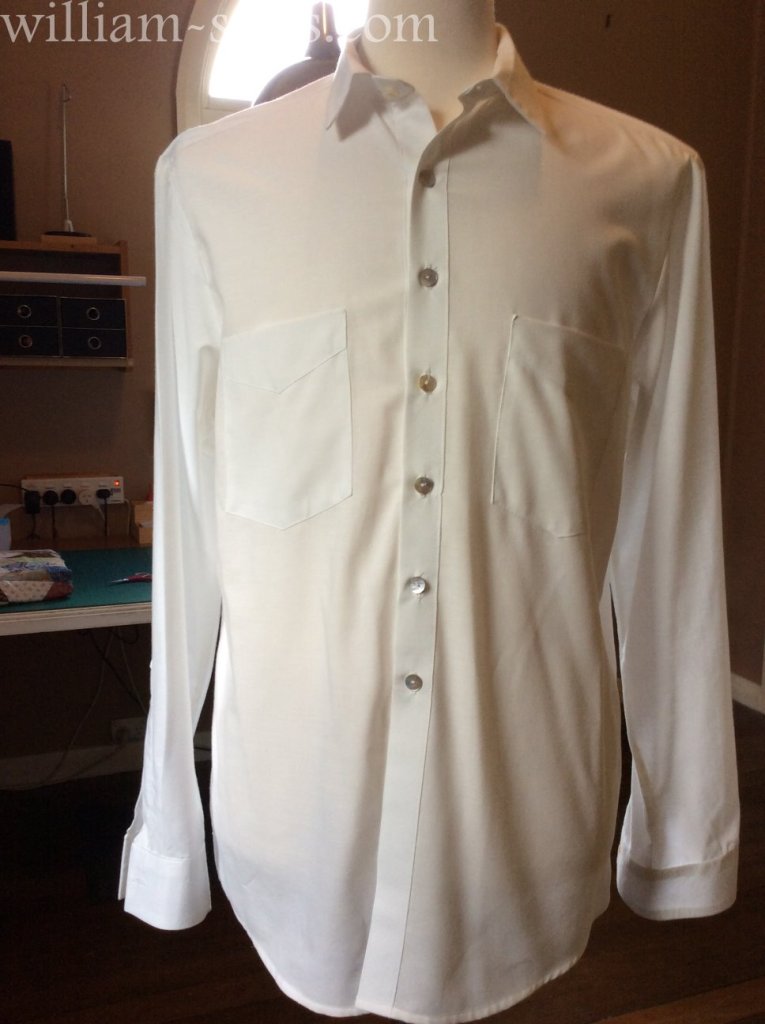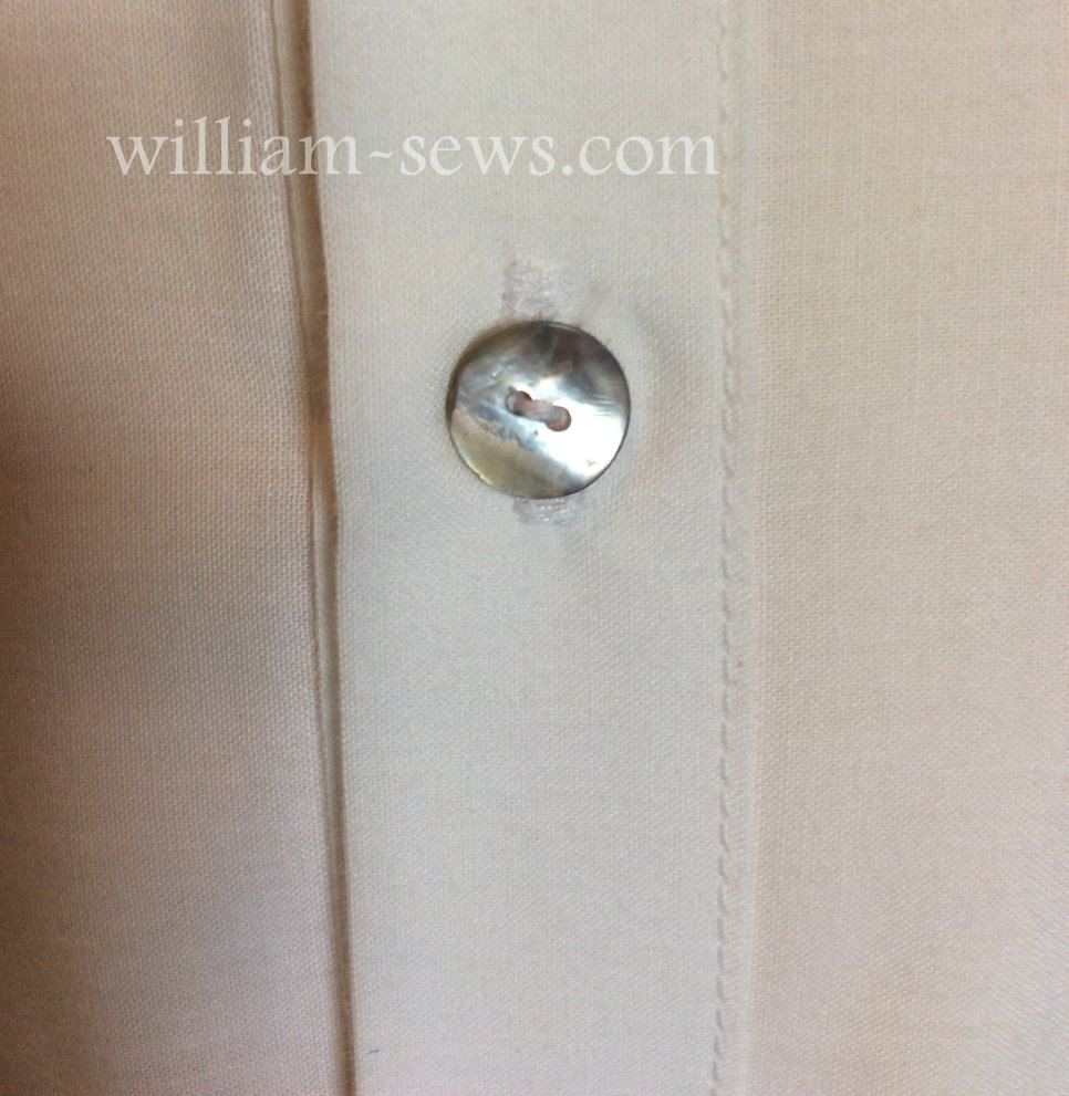 This was a sheet in its former life but it’s a nice, soft fabric. It is too small for me but a friend liked it, so I added shell buttons, he thinks it’s great and it isn’t wasted.