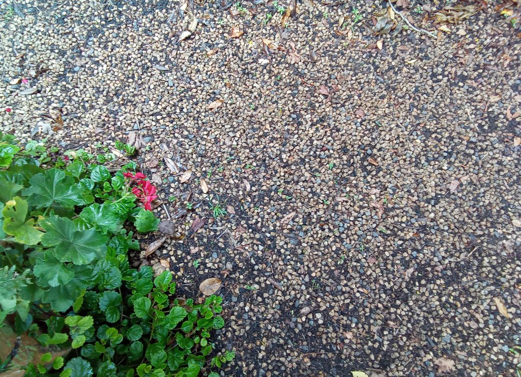The downside, if there is one, is that nothing will ever grow where salt is used and that’s fine by me where I’m using it, I don’t intend to dig it up and plant it out, just buy fresh gravel, this lot has been down for 20 years.
