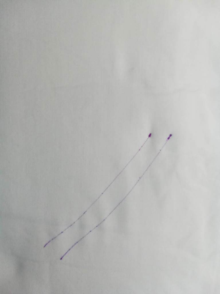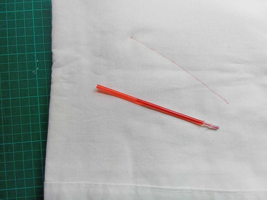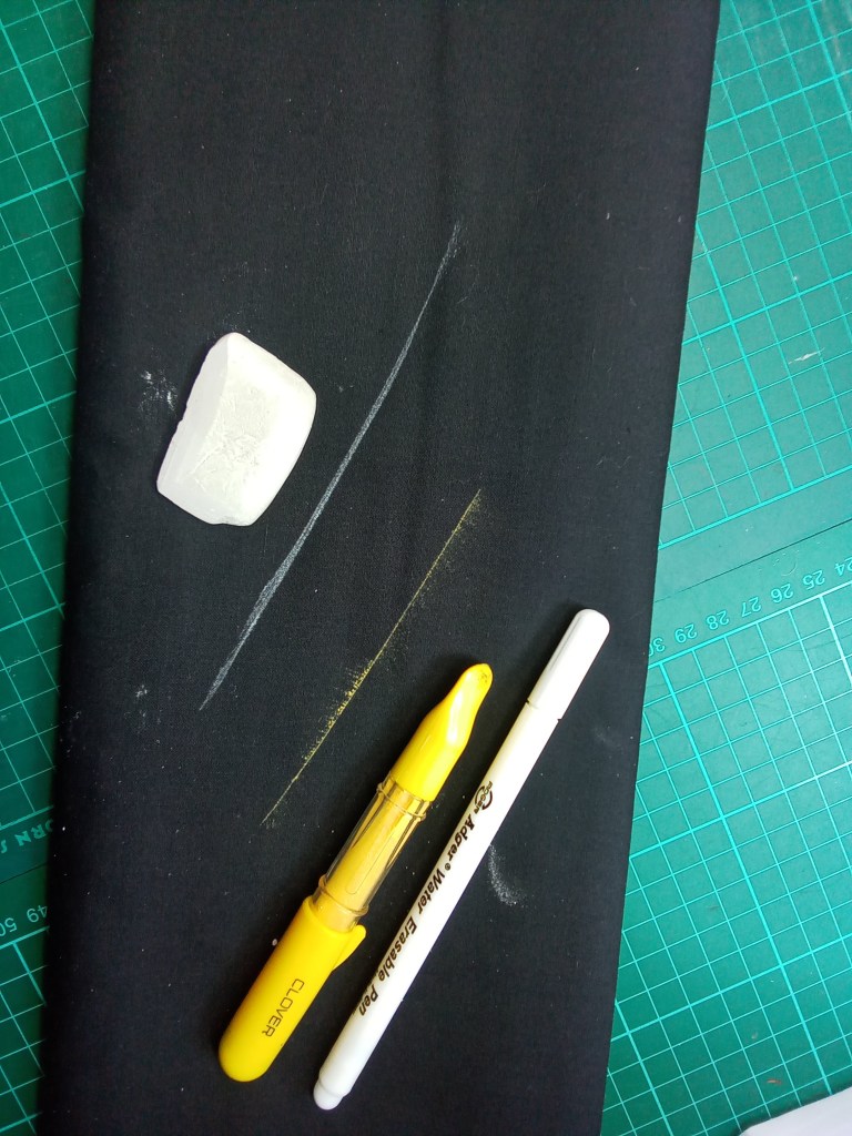 For dark fabric, there is good old French chalk and a rotary marker which works very well, it’s filled with powdered chalk and leaves a dotted line. Once again, the white pen doesn’t work.
