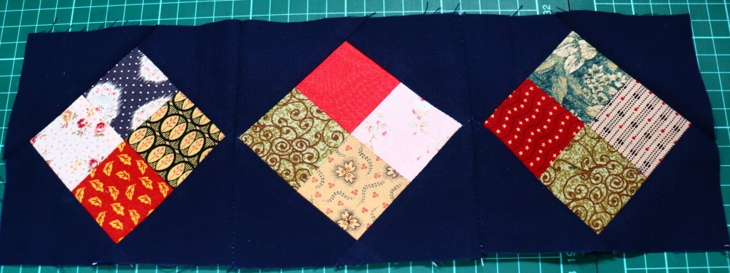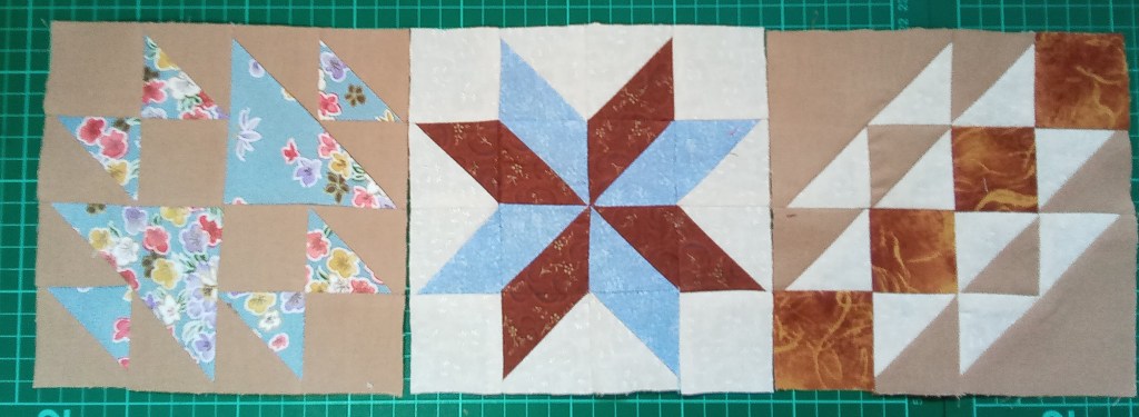 I’ve been trying out a few quilt blocks – playing around in reality, the weather is hot; February can be the worst summer month, and it’s living up to that reputation, it’s very humid. Summer has been pleasant until now, but looking forward to autumn.