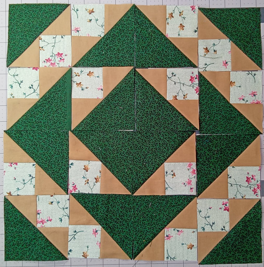 It’s not a disappearing four patch block, but a shaded 4 patch. It’s a good block, but a bit fiddly to make.